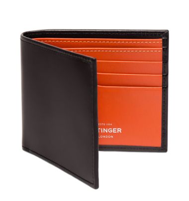 Handmade in England, the Ettinger Sterling Billfold Leather Wallet pairs a refined black calf leather exterior with a striking interior inspired by the regal colours of British banknotes. Soft, brightly hued leather adds a confident touch, while the slim design features six credit card slots and two billfold sections, slipping comfortably into your pocket. A signature of the Sterling Collection, it embodies British elegance with a subtle hint of eccentricity.
