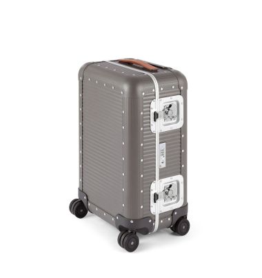 Inspired by vintage trunks and designed by award-winning industrial designer Mark Sadler, the FPM BANK luggage collection is entirely hand-made in Italy of 100% anodized aluminum with hand-set rivets and features calfskin details and their signature maxi butterfly closures. Representing the pinnacle of design and craftsmanship the BANK carry-on suitcase is ideal for the luxury traveler.