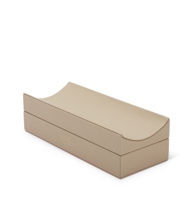 Hand-crafted in their signature Panama leather and lined in contrasting calfskin, the Smythson Pen Organizer is the perfectly stylish home for your writing instruments. Designed with functionality top of mind, a curved top keeps your most used pens right where you need them with a concealed storage bay below for myriad others.