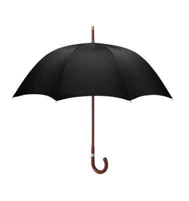 The Brigg umbrella has been an international byword for the best of British craftsmanship since 1836. Handcrafted in England, this one-piece umbrella has a polished stripped cherry handle and solid wooden shaft. It boasts a silver collar and a strong black nylon canopy (26" rib size). The overall length from the curve of the top of the handle, down to the tip is 37", a perfect height to double as a walking stick.