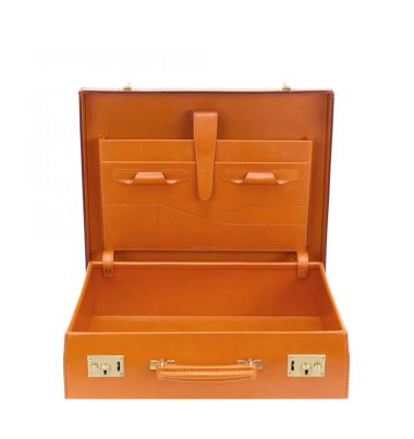 This version of the Churchill attache is self-lined in the same bridle leather as on the outside of the case.
