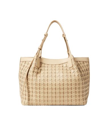 The Serapian Mosaico Ribbon Small Secret Tote Bag brings a softer, more expressive take on everyday carry. Crafted in Italy from supple nappa leather interwoven with fine cotton ribbons, the signature Mosaico weave reveals a beautifully dimensional texture with gentle tonal shifts. Lightweight yet spacious, it features thoughtfully placed compartments to keep essentials in order—refined, tactile, and quietly distinctive.